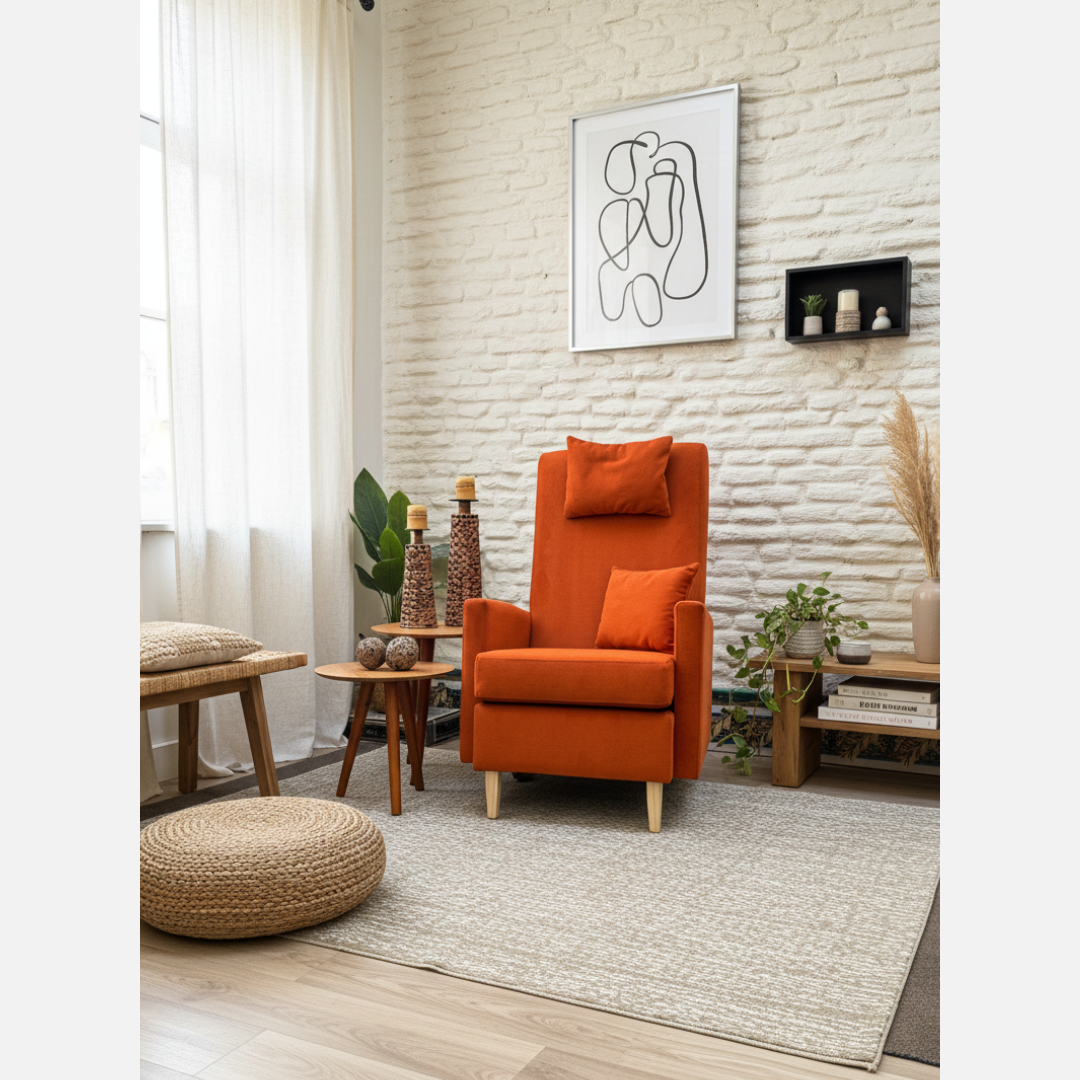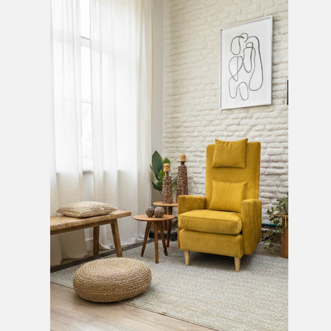 Elegancia y respaldo envolvente para apoyar cabeza y cuerpo con soltura. Su tapizado anti‑mancha se combina con estructura de eucalipto nacional y garantía de 10 años. Incluye almohadones desenfundables para higiene y renovación fácil.