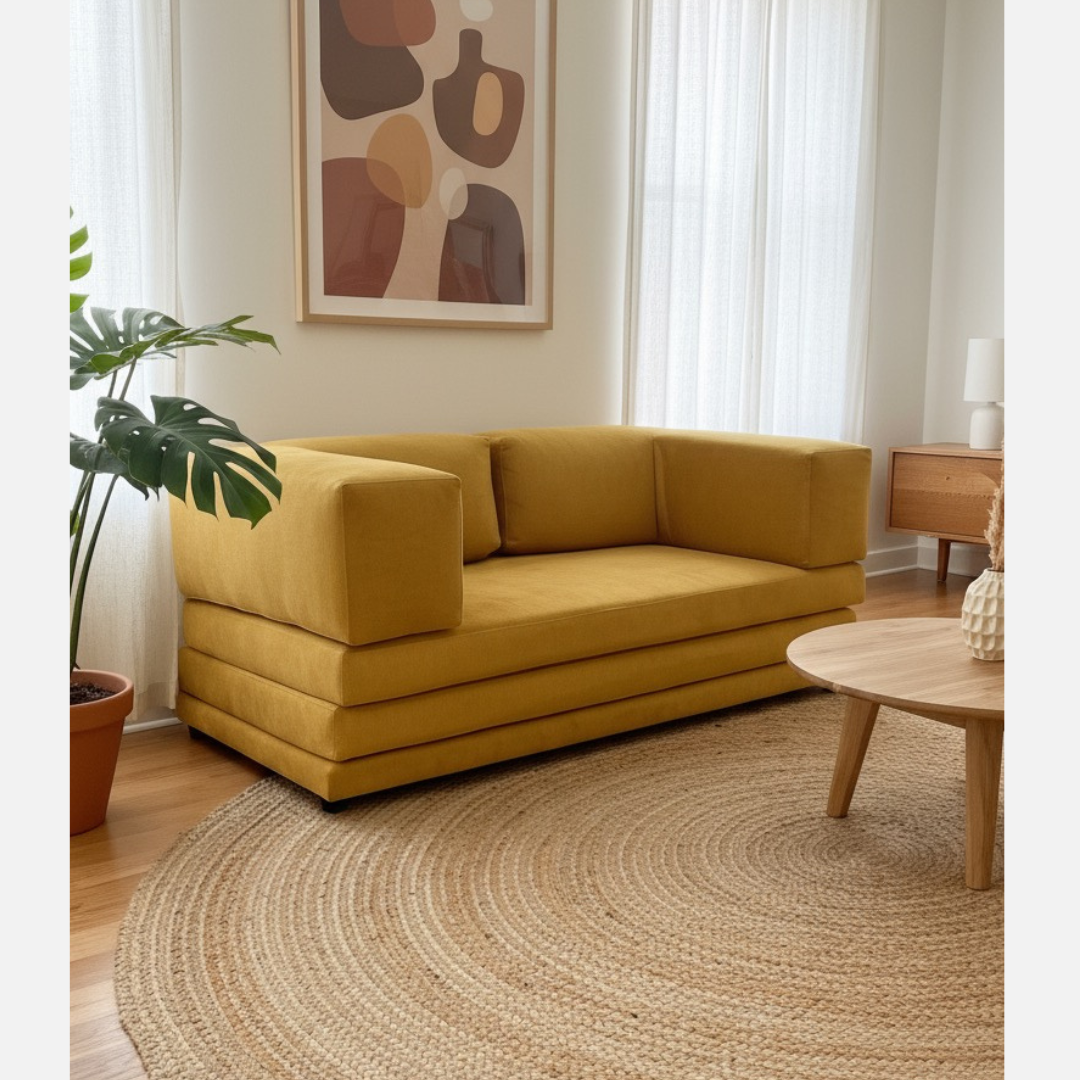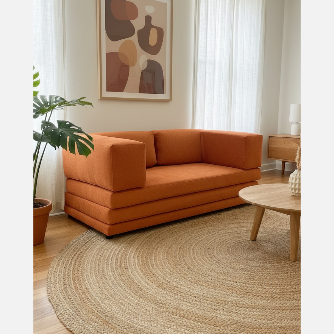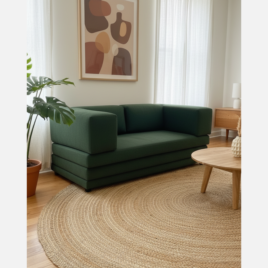 Con un diseño compacto y funcional, el Sofá Versátil te brinda la posibilidad de convertirlo en dos camas individuales o unidas como una cama matrimonial amplia. Su asiento profundo y almohadones de alta densidad garantizan confort inmediato, y sus fundas desmontables facilitan la limpieza.